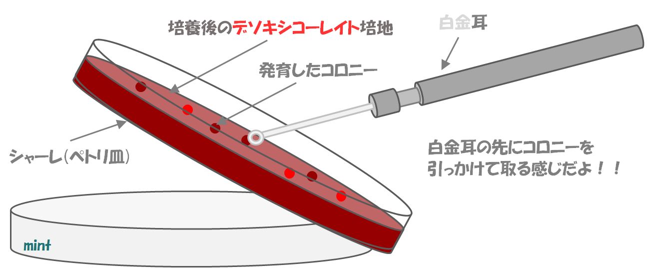 これを EMB寒天培地 (かんてんばいち) 画線塗抹 (かくせんとまつ)